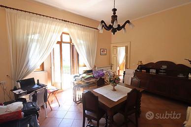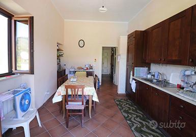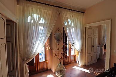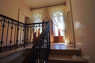 Un'elegante scala interna all'ingresso, rifinita con ringhiera e poggiamano in ferro battuto, introduce al piano primo dove si trova l'appartamento patronale composto al piano primo da salone di rappresentanza, cucina abitabile, doppi servizi, studio, due camere, armadi a muro realizzati artigianalmente e terrazzo di 200 mq.
