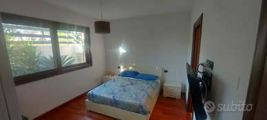 Propongo villetta bifamiliare di 135mq commerciali con doppio ingresso indipendente. L'immobile dispone di ampio giardino privato (110mq circa)dotato di barbecue in muratura,impianto d'irrigazione automatico e due ripostigli esterni. La metratura consente inoltre di destinare una parte alla creazione di un piccolo orto. Collegato al giardino ampio patio esterno dotato di veranda avvolgibile motorizzata che consente pranzi e cene con amici e parenti nei mesi più caldi dell'anno. L'ingresso affaccia nella zona living collegata alla cucina in ambiente open space. Attraverso disimpegno si accede alla zona notte: una camera da letto matrimoniale con bagno in camera privato dotato di doccia, una seconda camera dove è possibile installare due letti singoli e un secondo bagno recentemente rimodernato dotato di vasca.