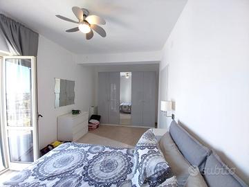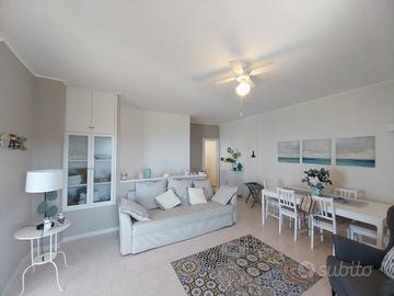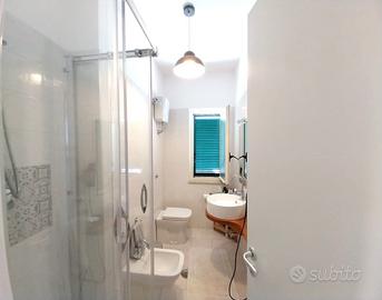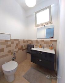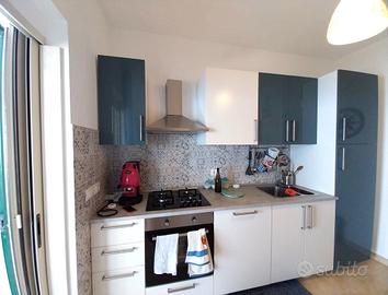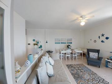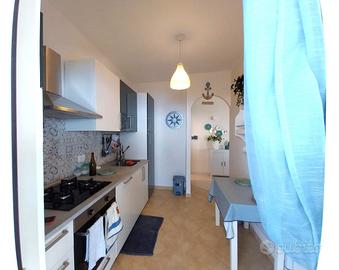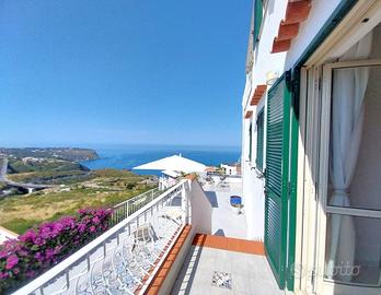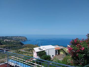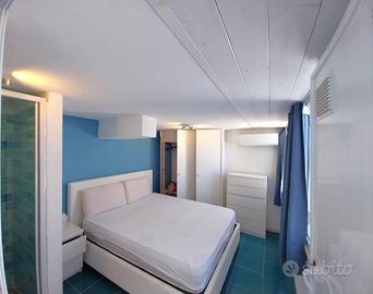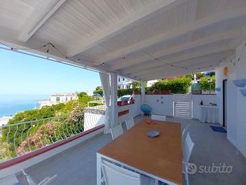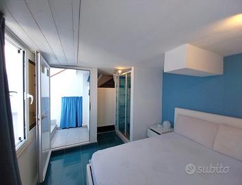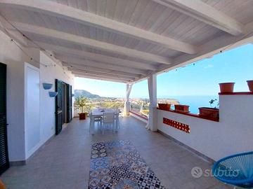 L'immobile, di 118 mq, è composto da: salone, cucina, bagno e ampio porticato vista mare di circa 34 mq (nella zona giorno); tre camere, bagno, balcone e ampio terrazzo vista mare di circa 100 mq (nella zona notte). Inoltre l'immobile presenta una dependance con bagno munita di climatizzatore. Quest'ultima ha ingresso indipendente tramite il terrazzo.