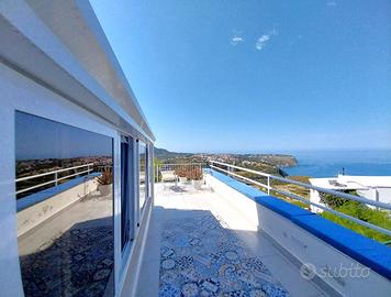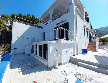 Proponiamo in vendita a San Nicola Arcella (CS), in posizione strategica (5 minuti dal centro del paese e 5 minuti da Praia a Mare), precisamente nel villaggio del Bridge, a circa 2 km dal mare, villa bifamiliare finemente ristrutturata con ingresso totalmente indipendente e vista mare mozzafiato.