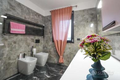 Ingressi pedonale e carrale indipendenti, al piano terra una zona giorno di circa mq 60 open space con possibilità di dividere gli attuali ambienti (cucina, sala da pranzo e soggiorno) e bagno con doccia walk in. Tramite una comoda scala in muratura arriviamo al piano primo dove trovano spazio tre camere matrimoniali tutte con il loro balcone privato ed un bagno con vasca freestanding. Al piano secondo un sottotetto open space rifinito e riscaldato con bagno.