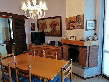 L'interno, in condizioni valide, presenta un tinello con camino e cucinino funzionale, due camere da letto luminose e un soggiorno perfetto per ritrovarsi in compagnia. Con cantina, lavanderia, portico e box auto incluso, avrai tutto lo spazio di cui hai bisogno. I serramenti in noce nazionale con doppi vetri garantiscono comfort e sicurezza.