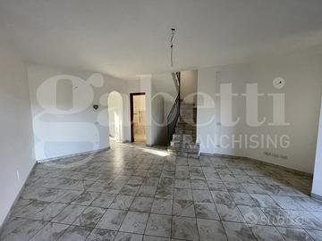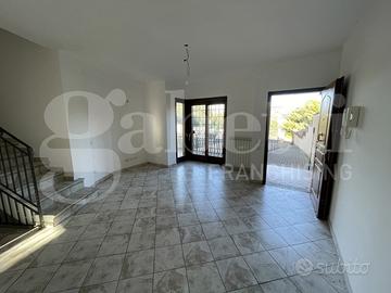 Il piano terra è composto da ingresso, salone doppio, cucina abitabile, bagno con finestra, patio e giardino a livello di circa 600 mq.