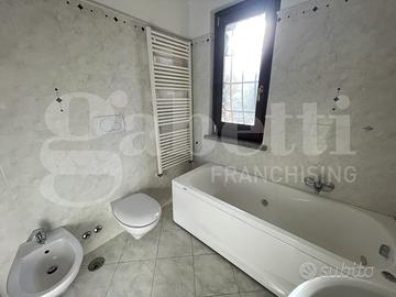 Al piano primo troviamo due camere da letto, un bagno con vasca idromassaggio e finestra e due ampi terrazzi, mentre al piano superiore mansardato, ampio locale unico con ripostiglio/cabina armadio, bagno con doccia e finestra e terrazzino.