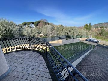 Rocca di Papa - Via dei Ciclamini - In zona residenziale e prestigiosa adiacente a Grottaferrata e tutti i servizi, proponiamo in vendita porzione di bifamiliare con tripla esposizione disposta su tre livelli fuori terra, oltre sala hobby con camino, angolo cottura e bagno al piano seminterrato.