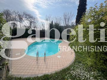 A Roè Volciano, in posizione strategica e comoda alla vicina Salò, proponiamo in vendita una villa bifamigliare, con giardino privato e meravigliosa piscina, così disposta: ingresso, salone doppio luminoso e con camino, zona angolo cottura/living, stupenda veranda con travi a vista e bagno zona giorno - il tutto circondato dal bellissimo giardino privato molto curato e riservato, con ulivi e alberi da frutto -; al primo piano troviamo la zona notte con una camera matrimoniale, una spaziosa camera doppia con balcone, una camera singola con balcone e un bagno finestrato.