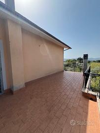 Zagarolo e precisamente in via colle dell'oro proponiamo in vendita porzione di bifamiliare con entrata indipendente, disposta su 2 livelli composta da; piano terra salone con cucina e bagno, piano primo con doppio ingresso camera matrimoniale con ampio terrazzo, camera e bagno. Sottotetto. Gas bombolone, acqua pozzo artesiano. Termoautonomo. L'immobile si presenta in buono stato di manutenzione con grade a tutte le finestre. Terreno di 3.000 mq c. a con uva e alberi da frutta. Soluzione adatta per due famiglie acquistando anche la porzione di fianco.
