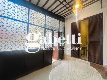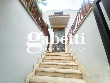 Gabetti Centocelle propone, nelle immediate vicinanze di via dei Gelsi e più precisamente in via della Saggina, la vendita di una casa bifamiliare composta da ingresso, salone, due camere, bagno e un ampio giardino. L'immobile si presenta in buono stato interno, dotato di riscaldamento autonomo, impianto di allarme ed è privo di spese condominiali.