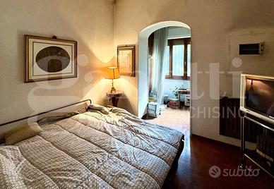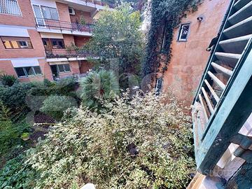 Accesso indipendente con lungo disimpegno, due grandi camere matrimoniali con affaccio sul giardino, terza camera con affaccio su Villa Ada, bagno. Direttamente dal corridoio si accede al terrazzo di circa 20mq con affaccio sui tre lati dell'immobile.