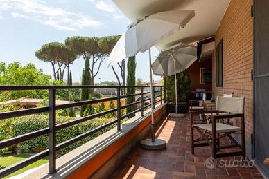 Casal Lumbroso - Nelle adiacenze di Via Casal Lumbroso, Giardini del Pescaccio, precisamente in Via Giulio Pittarelli, in comprensorio residenziale con area giochi per bambini, proponiamo la vendita di una bellissima Villa bifamiliare con giardino, piscina e box auto triplo. La proprietà si divide in due unità completamente indipendenti tra di loro. Una prima unità è composta da salone doppio, due camere da letto di cui una con cabina armadio, studio con terrazzo, cucina con tinello, tripli servizi e giardino di circa 250 mq con piscina e patio provvisto di cucina esterna. La seconda unità, è composta da salone con cucina a vista, tre camere da letto, studio, doppi servizi e giardino di circa 250 mq. Completa la proprietà un box auto di circa 50 mq. L'immobile si presenta completamente ristrutturato con rifiniture di pregio, pavimentazione in parquet e gress porcellanato, grate di sicurezza, zanzariere, impianto di allarme, camino, impianto d'irrigazione, pannelli solari con caldaia di accumulo per produzione di acqua calda sanitaria, e filtro demineralizzazione dell' acqua. Prezzo richiesto € 730.000,00. Per ulteriori informazioni rivolgersi all'agenzia Cipro Immobiliare S.r.l in via Cipro n.92 tel. email: rmcipro@gabetti.it