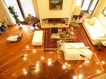 Casal Lumbroso - Nelle adiacenze di Via Casal Lumbroso, Giardini del Pescaccio, precisamente in Via Giulio Pittarelli, in comprensorio residenziale con area giochi per bambini, proponiamo la vendita di una bellissima Villa bifamiliare con giardino, piscina e box auto triplo.