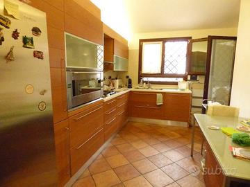 Completa la proprietà un box auto di circa 50 mq. L'immobile si presenta completamente ristrutturato con rifiniture di pregio, pavimentazione in parquet e gress porcellanato, grate di sicurezza, zanzariere, impianto di allarme, camino, impianto d'irrigazione, pannelli solari con caldaia di accumulo per produzione di acqua calda sanitaria, e filtro demineralizzazione dell' acqua.