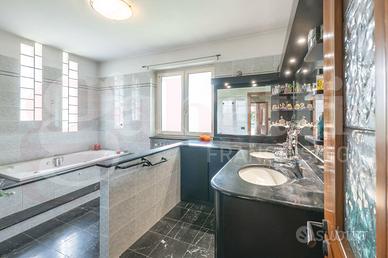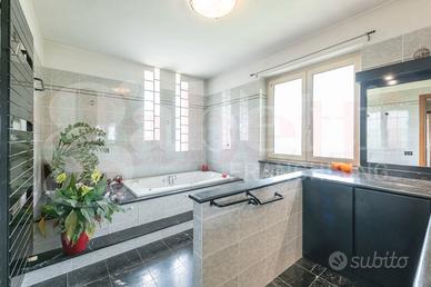 Al piano seminterrato: tavernetta di grande metratura, piscina con sauna e servizi, locali cantina, centrale termica e autorimessa doppia.
