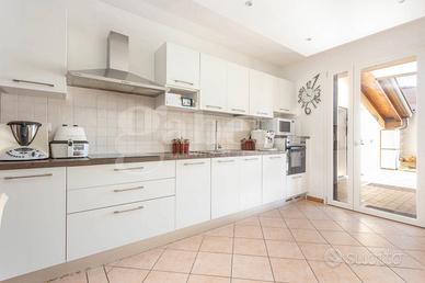 Zona giorno open space al piano terra, con ampio salotto e cucina luminosa, ideale per la vita in famiglia o per accogliere gli ospiti.