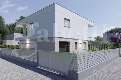 Ogni unità può disporre di soggiorno, cucina abitabile, 3-4 camere, 2 bagni, garage e cantina, con riscaldamento a pavimento e impianto fotovoltaico da 3 kW. La posizione residenziale e la vicinanza ai servizi rendono questa soluzione ideale per chi cerca comfort, modernità e tranquillità. Classe Energetica A4. Rif. NV136.