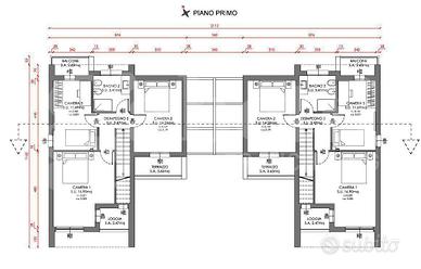 Ogni porzione della bifamiliare si sviluppa su due livelli ed è composta da: