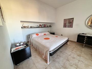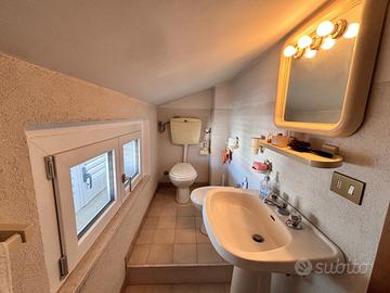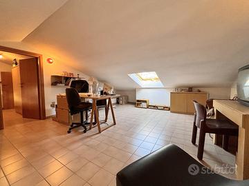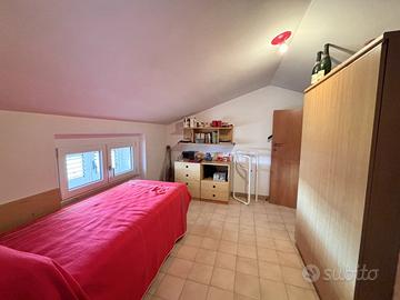 Secondo piano mansardato: camera da letto con bagno privato e zona living/studio.