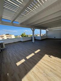Vendesi villa di 170mq circa con giardino esterno da 100mq, la villa si vende con rivestimenti e arredamento di pregio. La villa é dotata di impianto solare termico per l'acqua calda, n. 4 condizionatori Daikin perfera, impianto fotovoltaico da 6kw+10kw d accumulo, parcheggio interno coperto, infissi alluminio taglio termico. La casa ê così composta: - Ingresso pedonale e carraio -veranda coperta con esterno giardino barbecue e casetta degli attrezzi; - piano terra con soggiorno/cucina, disimpegno, ripostiglio e bagno con doccia; - primo piano con camera da letto principale con cabina armadio, cameretta con piccolo balconcino, camera da letto per gli ospiti, bagno con vasca, disimpegno con pozzo luce dove si sale per il terrazzo - terrazzo con veranda di 35mq e portico di 10mq con la possibilità di chiudere la veranda e avere un salotto con vista mare. Classe energetica A Prezzo trattabile