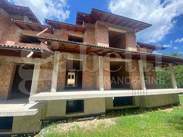 Due porzioni di villa bifamiliare ancora da completare, con giardino da realizzare per goderti gli spazi all'aperto.