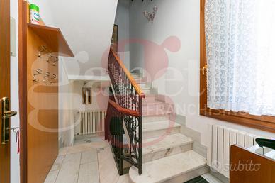 La villa è disposta in tal modo: al piano terra troviamo la zona living con la cucina abitabile, sala pranzo, soggiorno separato con camino e bagno finestrato; al primo piano la zona notte con 3 camere matrimoniali di cui una con balcone, il classico salottino veneziano centrale, il secondo bagno anch'esso finestrato e l'accesso al sottotetto dove eventualmente si potrà ricavare un terzo bagno con 2 camere o utilizzare come deposito; al piano seminterrato invece troviamo uno spazioso magazzino che può essere adibito a taverna con cantina e la sala lavanderia con servizio.