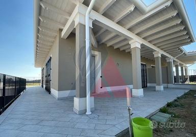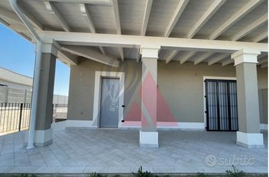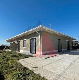 Villetta bifamiliare su un unico piano con all'ingresso un'ampia e luminosa sala. A fianco, sul lato ovest, una cucina separata e abitabile con porta finestra che da sul portico.