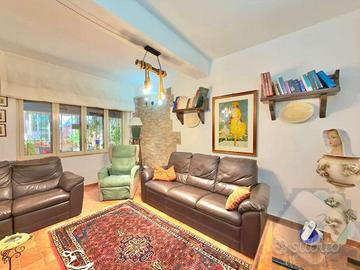 Allesterno troviamo un ampio porticato ideale per i momenti di relax e uno spazio esterno ben curato, con dependance dotata di forno a legna e cucina in muratura, perfetta per pranzi e cene allaperto.