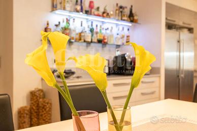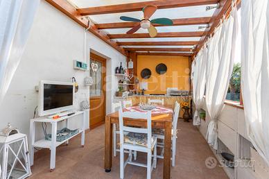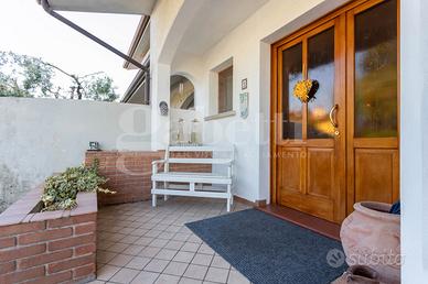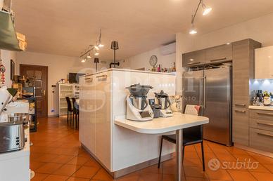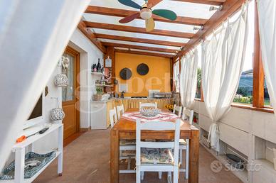 La casa si sviluppa su una superficie di 290 mq commerciali, con una distribuzione degli ambienti pensata per accogliere al meglio anche famiglie numerose. Al suo interno troviamo tre camere da letto, tre bagni, un ampio salotto con cucina a vista in open space, spazi funzionali e luminosi ideali per la vita quotidiana e per momenti di convivialità.