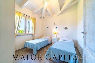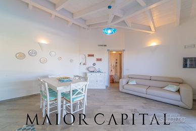 La proprietà si distingue fin dal primo sguardo per il suo carattere autenticamente sardo, espresso da linee architettoniche armoniose e dettagli ispirati alla tradizione locale, reinterpretata con eleganza e gusto contemporaneo. Gli interni trasmettono unatmosfera calda e accogliente, rendendo labitazione ideale sia come residenza principale sia come esclusiva casa vacanze. La zona giorno si sviluppa in un living ampio e luminoso, caratterizzato da generosi spazi e da una cucina a vista perfettamente integrata, pensata per vivere la casa in modo conviviale e funzionale. La zona notte del piano terra comprende una camera matrimoniale con bagno en suite e porta finestra con accesso diretto allesterno, una camera doppia di ampie dimensioni, facilmente adattabile a seconda matrimoniale, e una terza camera utilizzabile come doppia o singola. Completa il piano un bagno di servizio, rifinito con cura e dotato di tutti i comfort.