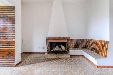 al piano terra da un ingresso, un ampio e luminoso soggiorno, una cucina abitabile con camino, tre camere matrimoniali, due camere singole, due bagni e veranda;