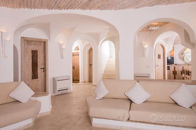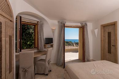 Nel cuore del rinomato complesso residenziale di Cala Granu, a pochi passi dalle incantevoli spiagge di Porto Cervo, sorge una magnifica villa di lusso progettata dal celebre architetto Jean-Claude Lesuisse Couelle. Immersa in un paesaggio naturale mozzafiato, tra ulivi secolari e viste spettacolari sul Mar Mediterraneo, questa proprietà rappresenta il perfetto connubio tra eleganza, comfort e privacy. Situata a soli 800 metri dalla spiaggia, la villa si estende all'interno di un giardino curato con grande piscina panoramica, ideale per momenti di relax in totale riservatezza. Caratteristiche principali: Ampio e luminoso soggiorno con zona pranzo e accesso diretto alla terrazza vista mare Cucina moderna completamente attrezzata 5 camere da letto, tutte con bagno en-suite Suite padronale con spogliatoio, terrazza coperta e vista mare Aria condizionata e sistema di allarme in tutte le stanze Lavanderia, parcheggio coperto e accesso indipendente Questa villa unica, perfettamente integrata nel paesaggio sardo, è un'opportunità irripetibile per chi desidera vivere l'eccellenza della Costa Smeralda. Porto Cervo - Cala Granu | Sardegna Nord-Orientale Contattaci oggi per maggiori informazioni o per organizzare una visita privata.