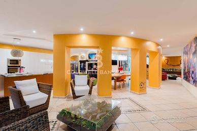 Rif: CBI069-2248-133018 Classe energetica: E - EPglnr: 126.97 kWh/m² CALIMERA Nel comune di Calimera, affascinante borgo della Grecìa Salentina situato a pochi minuti dal mare, proponiamo in vendita una villa unica nel suo genere, elegante e rifinita, caratterizzata da linee moderne e generosi spazi interni ed esterni. Dai dettagli in pietra leccese sulla facciata esterna al marmo presente nei vari ambienti interni, questa proprietà è un immobile di assoluto prestigio. Si sviluppa su una superficie complessiva di circa 460 mq ed è arricchita da ampie terrazze, un giardino privato antistante e retrostante per complessivi 180 mq e un grande box auto di circa 90 mq. La villa si articola su due livelli principali, piano rialzato e primo piano, oltre a un piano seminterrato. Il giardino antistante introduce al piano rialzato della villa di circa 215 mq che ospita un ampio e elegante ingresso, un luminoso soggiorno, una comoda cucina abitabile con ripostiglio, due bagni e un ripostiglio. La zona notte, sullo stesso livello, comprende due spaziose camere matrimoniali, pensate per garantire comfort e tranquillità. Una comoda scala interna conduce al primo piano, di circa 65 mq, dove trovano spazio unulteriore camera da letto e uno studio, facilmente utilizzabile anche come quarta camera da letto. Entrambi gli ambienti affacciano su una terrazza di circa 50 mq. Al piano seminterrato completa la proprietà con una grande taverna di circa 180 mq con camino, dotata di un bagno e due ripostigli e uno spazio esterno di circa 60 mq Il giardino retrostante, dotato di impianto di irrigazione, rappresenta un'area riservata e curata dove poter organizzare eventi, feste in famiglia o semplicemente rilassarsi in totale privacy. Tutti i livelli sono collegati tra di loro da un comodo ascensore esterno. La villa è infine dotata di infissi in legno e in alluminio, riscaldamento a metano, condizionatori, telecamere esterne e impianto di allarme collegato alla...