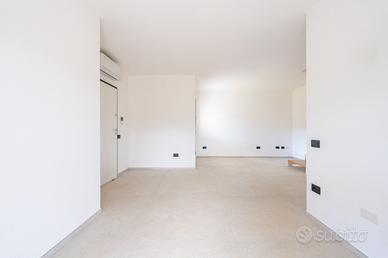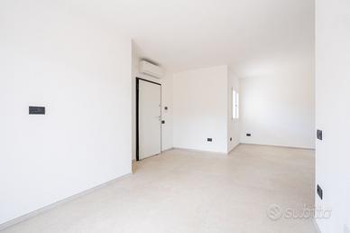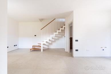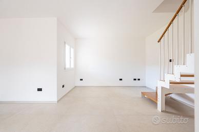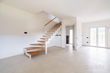 Al piano terra si trova una spaziosa zona giorno di circa 30 m² con soggiorno e angolo cottura a vista. Dalla zona giorno si accede alla veranda esterna, pianellata e predisposta per la chiusura con infissi in vetro scorrevoli amovibili, che permettono di recuperare oltre 10 m² di superficie aggiuntiva e ampliare ulteriormente lo spazio abitabile. Completa il piano un primo bagno con piatto doccia.
