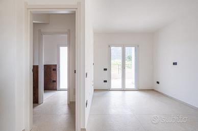 Gli infissi sono in PVC bianco con doppia guarnizione e vetrocamera basso emissivo, mentre le porte interne sono bianche, a battente, tamburate e laminate antigraffio.