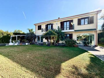 Rif: CVDP6 Classe energetica: D Scopri questa esclusiva villa in vendita a Carini, situata nel prestigioso residence Marina Longa a soli 300 metri dal mare. Una proprietà raffinata che si apre su un ampio patio adibito a parcheggio, con a sinistra un incantevole prato allinglese, ornato da piante e palme, e unarea dedicata alla piscina e al solarium. Allingresso, sarete accolti da un elegante salone doppio, impreziosito da una grande vetrata che si affaccia sul curato giardino. Il soggiorno si integra perfettamente con una cucina abitabile e una spaziosa veranda, ideale per godersi momenti di relax o caffè allaperto in compagnia di amici e parenti. La zona giorno al piano terra comprende inoltre uno studio/camera e due bagni finemente rifiniti. Il piano superiore è interamente dedicato alla zona notte, composta da due suite matrimoniali con bagno privato (capacità ospitativa totale di sei persone), una camera da letto matrimoniale aggiuntiva e un ulteriore bagno di pregio. Completano la proprietà unampia lavanderia, unarea barbecue e soluzioni tecnologiche allavanguardia come impianto fotovoltaico, allarme e videocamere. La posizione strategica, vicinanza con laeroporto e accesso privato al mare, rendono questa villa la scelta ideale per chi cerca comfort, privacy ed esclusività. Non lasciarti sfuggire questa opportunità unica di vivere in un ambiente di prestigio a pochi passi dal mare. Contattaci per ulteriori informazioni e per prenotare una visita.E possibile visionarlo tutti i giorni previo appuntamento telefonico chiamando al nostro numero fisso oppure inviando un messaggio tramite il servizio WHATSAPP al numero Il nostro Gruppo, su richiesta, mette a disposizione dei propri clienti un consulente che, si occupa della mediazione creditizia ed assicurativa. Contattateci se volete una consulenza, gratuita, per sapere quale sia la scelta più adatta alle vostre esigenze.