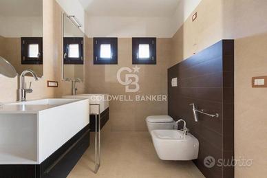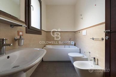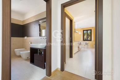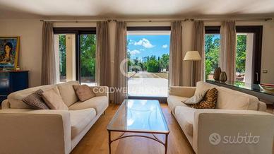 La villa dispone di quattro camere da letto e quattro bagni, di cui due en suite, con una distribuzione degli spazi funzionale e ben equilibrata.