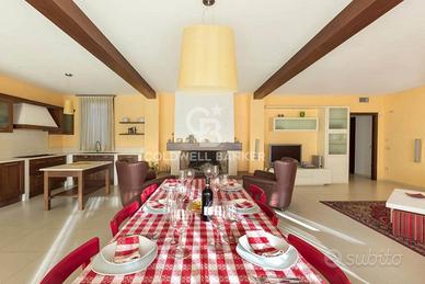 Al piano interrato si sviluppa una zona versatile con ambienti attualmente adibiti a camere aggiuntive e area spa/wellness, completata da quattro bagni supplementari, offrendo molteplici possibilità di utilizzo.