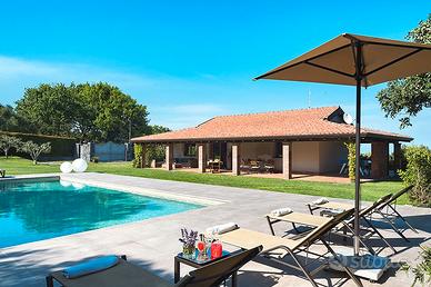 Scopri il tuo angolo di paradiso in questa lussuosa villa e attivita' gia' avviata, situata nei suggestivi dintorni di Viagrande, a soli 20 km da Catania. Immersa nella bellezza naturale del Parco dell'Etna e della Strada del Vino dell'Etna, questa proprietà moderna si sviluppa su due livelli, offrendo un'architettura elegante e raffinata.