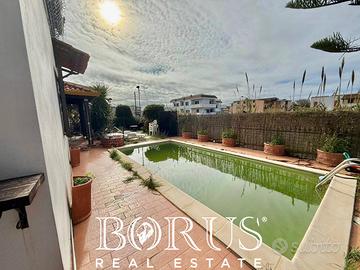 Rif: CB5 Classe energetica: G Nel comune di Castel Volturno, in ampio viale collegato alla Domiziana ed in località fronte Pinetamare, lagenzia immobiliare Borus Real Estate propone in vendita villa unifamiliare insistente su 600 mq di terreno fornito di accesso da due strade. La soluzione indipendente a schiera insiste su circa 500 mq di terreno in parte pavimentato ed in parte verde con pozzo artesiano (cè anche acqua potabile) e piscina cui si collega comodo gazebo. Il piano terra, di circa 140 mq, dispone di ingresso, doppio salone, cucina, un vano che volge sulla piscina, un soggiorno ed una prima camera da letto con bagno in camera. Tramite la scala in mogano, si accede piano primo di 140 mq dove troviamo un ampio disimpegno che conduce ad unampia cucina con camino e vano lavanderia, tre camere da letto ed un accessorio. Diverse camere dispongono di balconate dedicate. Allultimo livello troviamo un sottotetto di 140 mq circa che volge su comodi balconi; sono presenti bagno e una particolarissima cabina di locomotiva. Al piano seminterrato il garage, accessibile da una delle due strade, si estende per un 150 mq e dispone di ampio spazio per il parcheggio delle vetture e due vani uso deposito. APE = G. Richiesta di euro 450.000,00. Rifiniture in marmo pregiato, cotto e ceramiche di Vietri sul mare. Porte in legno interne con doppi vetri ed esterne in e legno e ferro. Mogano interno per la scala e per alcune porte. Immobile consigliato a famiglie numerose o a chi cerca lindipendenza con numerosi punti di svago. Consigliato a chi lavora nellambito delle case famiglia e per anziani. Sei alla ricerca di una soluzione indipendente in Castel Volturno, località Fronte Pinetamare? Contatta la Borus Real Estate al numero fisso o al numero di cellulare Potremmo disporre della soluzione che fa al caso tuo!