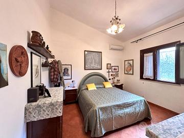 La villa è composta al piano terra da un'ampia cucina soggiorno con varie aperture che garantiscono una luminosità notevole, una delle quali su veranda di 50mq con vista giardino, ed un disimpegno che congiunge i due bagni, camera da letto e cameretta.