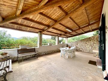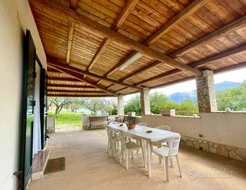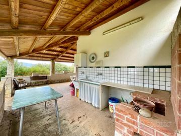 La parte esterna è composta da un'ampia veranda con zona barbecue, offrendo una vista panoramica mozzafiato.