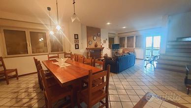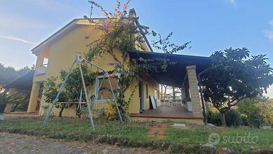 Rif: 9309 Classe energetica: F Lagenzia Re Casa Immobiliare propone in vendita villa in Abruzzo a Colonnella, vista mare. Splendida villa multipiano, di mq 170 con una corte di 2500 mq e 3500 mq di seminativo, costruita nel 1990 e in ottimo stato di conservazione. Situata in una zona tranquilla, questa residenza si trova in una posizione strategica, vicina a tutti i principali servizi e a pochi chilometri dal mare e con un panorama. Villa indipendente, dislocata su 3 livelli e precisamente: piano terra, piano primo, piano seminterrato: Piano terra di mq 85 con ampia zona giorno con camino, cucina abitabile con porta finestra che porta sul terrazzo di mq 35 e ripostiglio, bagno con finestra;Piano primo di mq 85 con disimpegno che collega, tre camere da letto matrimoniali di cui una con bagno interno con finestra e porta finestra che porta sul balcone di 6 mq, camera singola, bagno principale con finestra;Piano seminterrato con cantina, bagno con finestra. Gli infissi e le finestre sono in doppio vetro e alluminio con apertura e chiusura automatiche, camino nel soggiorno, pavimentazione monocottura, due ampi terrazzi di 35 mq, perfetti per godersi il clima mite della zona e ammirare il meraviglioso panorama circostante, un totale tra corte e terreni di 6000mq. Per quanto riguarda i posti auto, la residenza offre un box auto di 30 mq e un posto auto coperto di 30 mq, per garantire un'adeguata sistemazione ai veicoli di tutta la famiglia. L'immobile viene venduto completamente arredato.