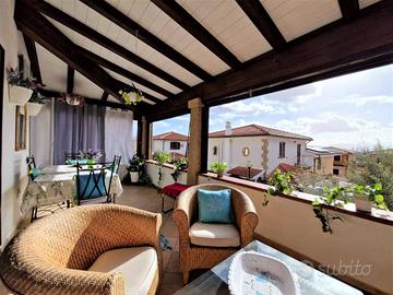 (192820854) - Olbia, in Località Sa Minda Noa, Via Parigi, all'interno di un elegante e riservato comprensorio di ville e villette, proponiamo in vendita al prezzo di 438.000,00 euro una porzione di villa in bifamiliare. L'immobile è stato edificato tra gli anni 2004 e 2005, ma si presenta in perfetto stato, di conseguenza non vi è la necessità di intervenire con opere di ristrutturazione né manutenzione straordinaria. Ha un'importante superficie coperta che riportiamo di seguito: mq coperti del piano terra rialzato e del piano primo pari a 117 ca. mq coperti piano semi interrato (appartamento autonomo ed indipendente, regolarmente concessionato ad uso residenziale) 90 mq ; totale mq commerciali 215 mq circa. L'immobile al suo interno è così composto: ampio soggiorno/ pranzo, cucina separata abitabile, n° 3 camere da letto (2 matrimoniali ed un'ampia cameretta), n° 2 servizi igienici finestrati con doccia. Al piano semi interrato, invece, collegato al resto dell'abitazione da un vano scala interno, ma anche con accesso indipendente dall'esterno, vi è un'ulteriore appartamento completamente autonomo, al suo interno composto da: soggiorno/ pranzo, ampio angolo cottura separato, camera matrimoniale, cameretta, grande dispensa/ ripostiglio di 12 mq, servizio igienico. Completano la proprietà un'ampia veranda coperta abitabile e vivibile tutto l'anno, un terrazzo con meravigliosa vista che spazia fino al porto di Olbia, un cortile privato di 57 ca. Questo immobile è l'ideale per chi ha una famiglia numerosa che ha necessità di grandi spazi, o per chi ha necessità di poter avere un secondo appartamento totalmente indipendente per ospiti, figli adolescenti o genitori anziani, o per realizzare uno studio privato. Essendo un appartamento indipendente, volendo, si presta anche ad essere messo a reddito con una rendita mensile interessante. Impianto di ris - Classe: C - IPE: 175.00 kWh/mq anno
