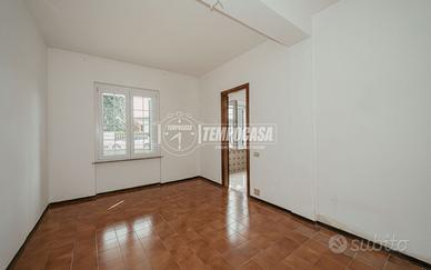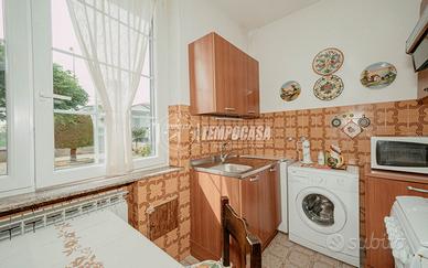 Il secondo appartamento al piano terra si apre con un ingresso in soggiorno, accogliente e spazioso. Subito sulla destra c'è una cucina abitabile, ideale per cucinare e mangiare in relax. A sinistra, un corridoio conduce a due camere da letto, entrambe spaziose, a un bagno con vasca, perfetto per momenti di relax, e a una stanza che può essere usata come guardaroba o ripostiglio, offrendo spazio extra per organizzare tutto al meglio.