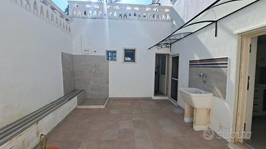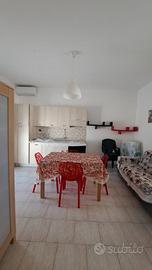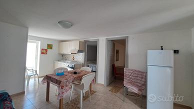 Si tratta di una soluzione completamente arredata composta da due appartamenti (uno al piano seminterrato e l'altro al piano rialzato) di 3 vani ed accessori che hanno affaccio su ampi spazi esterni anti e retrostanti.