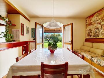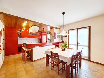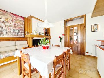 Al piano terra si sviluppa la zona principale dell'abitazione, composta da un comodo ingresso, soggiorno, cucina abitabile con caminetto e uscita su di un bellissimo porticato affacciato sul verde, disimpegno zona notte, due camere da letto e due bagni.