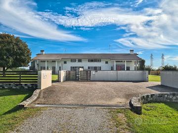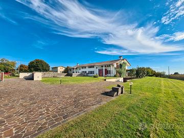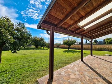 Esternamente la proprietà è circondata su tre lati da un curatissimo giardino piantumato di oltre 3.700 mq, arricchito da alberi da frutto e perfettamente mantenuto, che garantisce privacy e totale tranquillità.