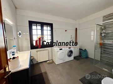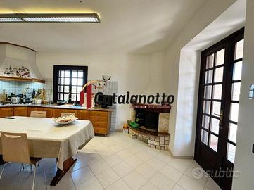 Al piano terra, si trova un ampio ingresso con una elegante scala a vista in ferro battuto, una sala da pranzo con salone openspace, uno studio, un bagno e una cucina con camino che si affaccia su un portico di 15 mq . Al primo piano, un disimpegno conduce a quattro camere da letto, tutte dotate di terrazzi calpestabili accessibili da ciascuna stanza, e a un ampio bagno con vasca. L'intera proprietà è caratterizzata da finestre e balconi, garantendo luminosità in ogni zona.