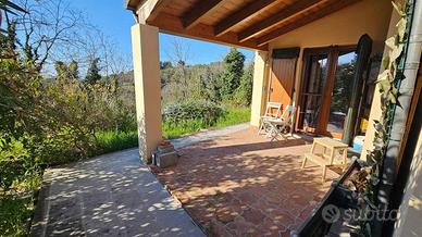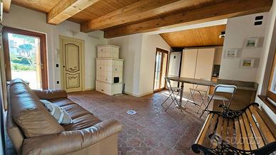 Rif:(119423145) - Nel Cuore del Monte San Bartolo, in ESCLUSIVA oggi Vi vogliamo presentare questa signorile villa in casolare completamente nuova con finiture di alto pregio, curata nei minimi dettagli, ricostruita completamente e ultimata nel 2018, integrata nel meraviglioso e tipico contesto del Parco Naturale, conservando e mantenendo un fascino caratteristico e senza tempo ma senza tralasciare nulla al caso. Nell'accedere all'interno non possiamo non notare il pavimento in cotto con inserti di maiolica decorati a mano, la cucina ad induzione in vetro-ceramica bianca, pensili di legno massello e ripiani in granito intagliati su misura e mobilio a scomparsa la rendono unica, oltre che pratica e spaziosa. Dalla cucina possiamo accedere al porticato esterno vista mare e circondato da una vegetazione curata e ricercata ideale per poter passare, in totale privacy, splendidi momenti, con amici o in famiglia, oppure vivendo all'aperto le colazione, il pranzo e la cena in giardino. Ancora all'interno troviamo al zona soggiorno/pranzo con stube in maiolica dipinta a mano, realizzata su misura da maestri artigiani e collegata all'impianto di riscaldamento. Bagno di servizio finemente rifinito. Superato il disimpegno entriamo nella zona notte con la presenza di due camere matrimoniali e bagno. I dettagli degli ambienti sono tutti ordinati, unici ma funzionali. Da una porta a scomparsa separata, presente nella zona giorno, accediamo al piano primo con un scala (il cui accesso può avvenire anche in modo indipendente dall'esterno) dove troviamo due ulteriori camere matrimoniali e bagno comunicante con entrambe. Tutte le stanze sono dotate di travi o pannelli con legno a vista. Il primo piano è molto ben illuminato e la vista spazia da San Marino fino al mare con un colpo d'occhio sulla meravigliosa vegetazione circostante. Al piano interrato troviamo una cant