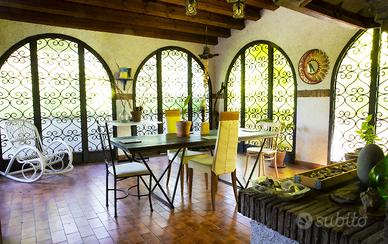 La proprietà, edificata negli anni '80 e già libera, è circondata da un parco di circa 6000 mq con ulteriore terreno agricolo di circa 3000 mq. Completano la proprietà alcune pertinenze attualmente adibite a deposito attrezzi e laboratorio.