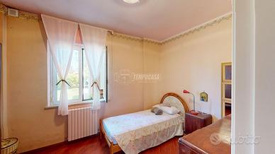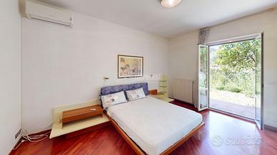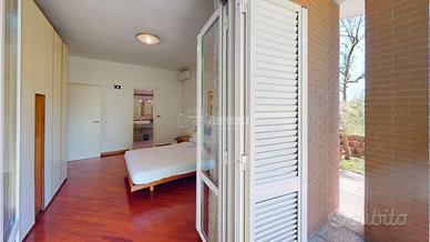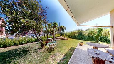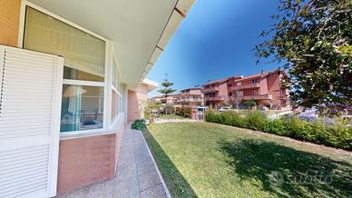 Piano terra: ingresso con porta blindata, ampio e luminoso soggiorno con uscita sul giardino, cucina abitabile con uscita sul giardino, corridoio notte, antibagno con ripostiglio e bagno finestrato con vasca idromassaggio, camera matrimoniale con bagno ensuite e uscita sul giardino, camera singola e camera matrimoniale.